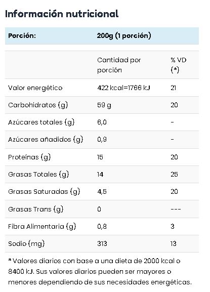Pizza de Muzzarella. Sin TACC. Sin Conservantes. Libre de gluten. 0% Grasas Trans.